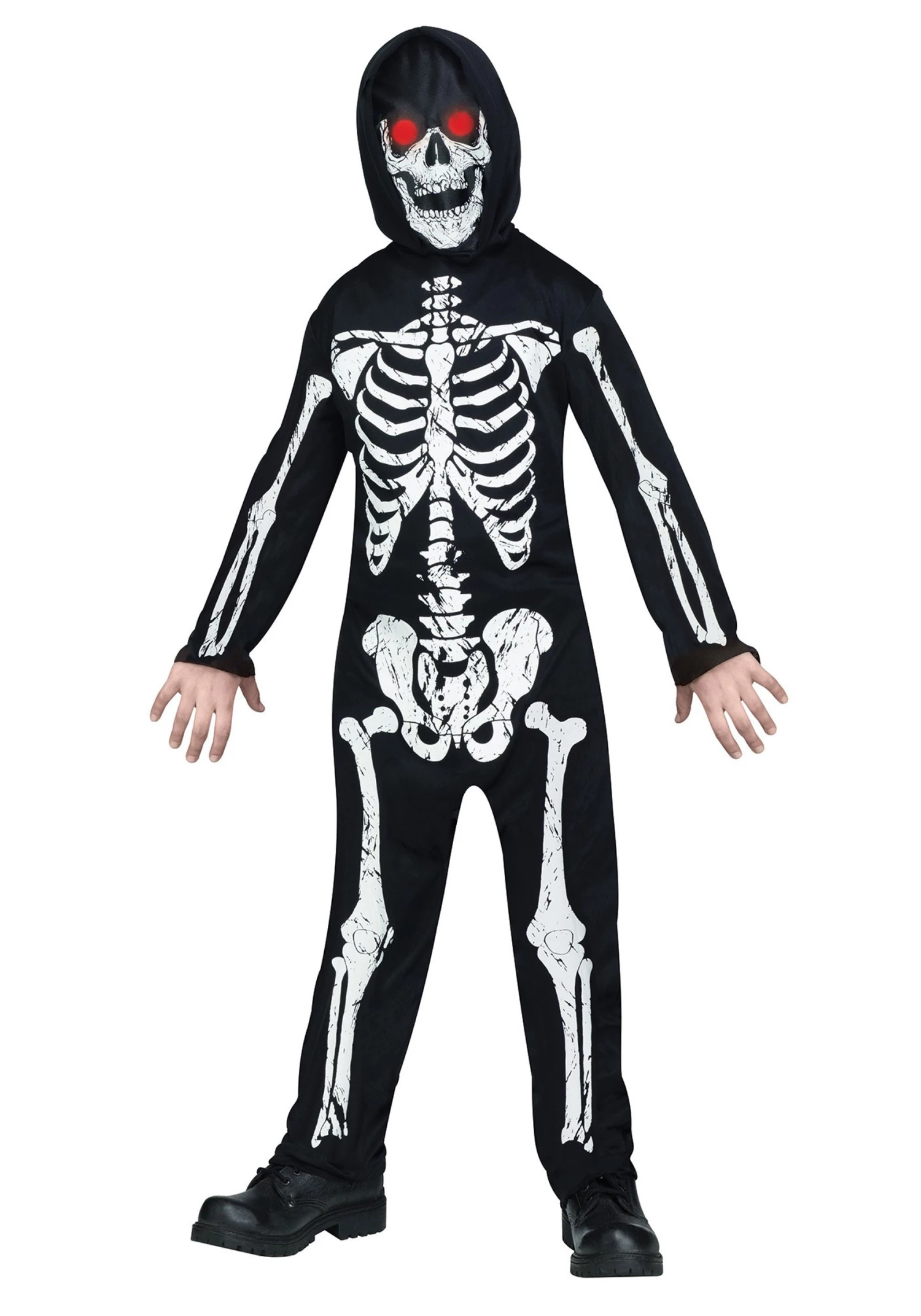 Let your boy or girl up their Halloween game this year with this signature jumpsuit costume. The hooded mask features a glowing eyeball effect that, of course, fades in and fades out in a chilling red hue. The lights are powered with a simple 3 AA batteries, so the frightening effect will last for the whole trick-or-treat adventure.