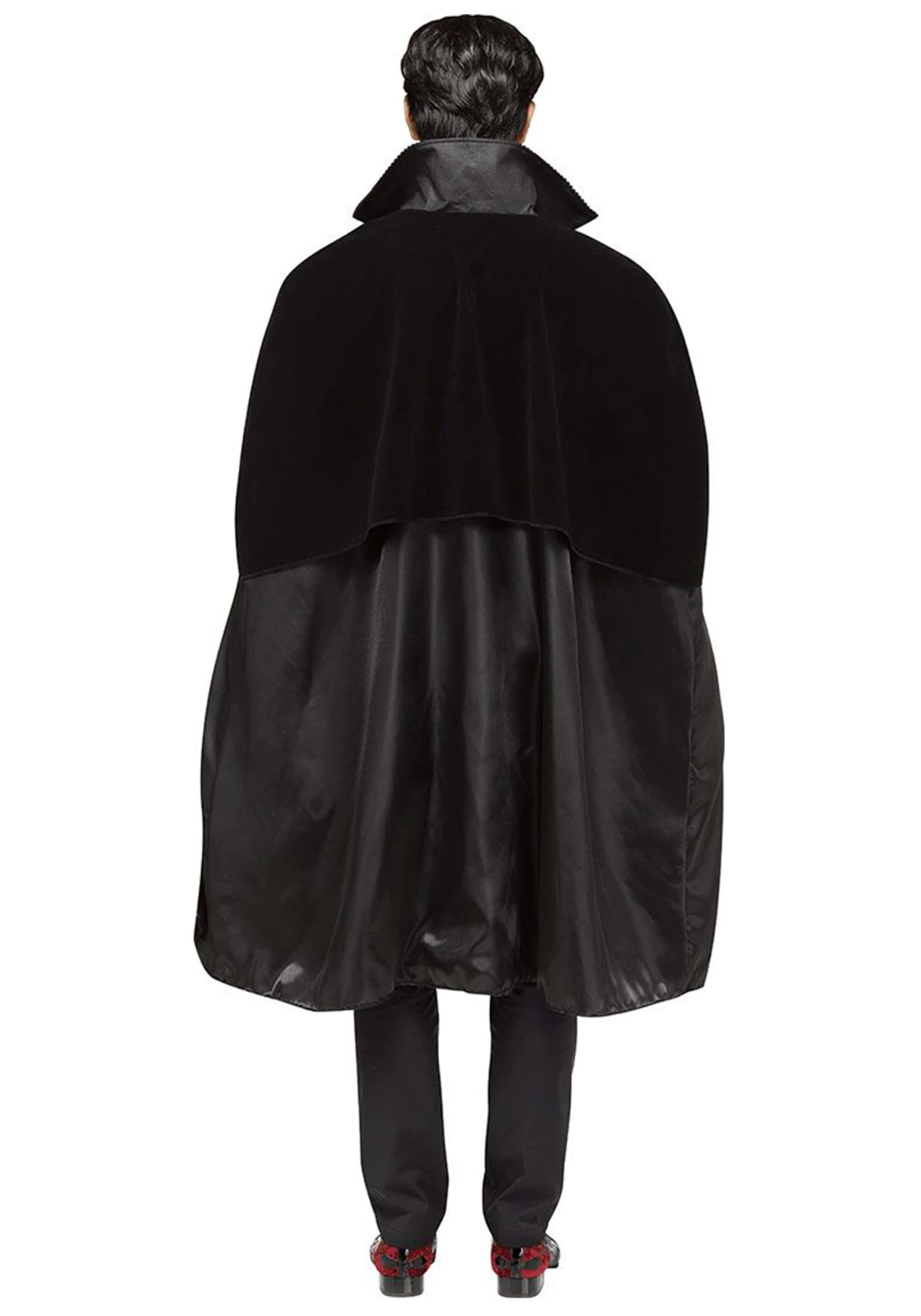 This costume, as noble as it appears, is actually rather simple. It is comprised of only two parts: the top and the cape. The pullover jersey knit shirt features a spooky skull print on the front. A satin jabot is sewn on the chest of the shirt to add a hint of fashion from the Victorian Period.Â