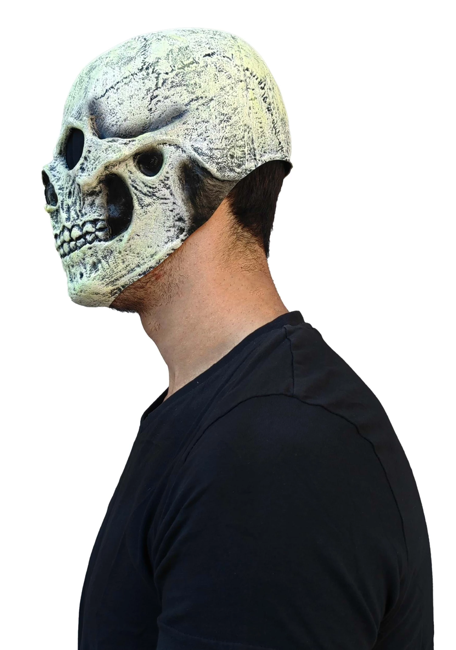 Embrace your spooky side when you wear this Glow in the Dark Skull Mask for Adults! The molded latex mask covers your entire face and is painted to look like a realistic skull. Turn off or dim the lights to see the skull glow a creepy green!Â