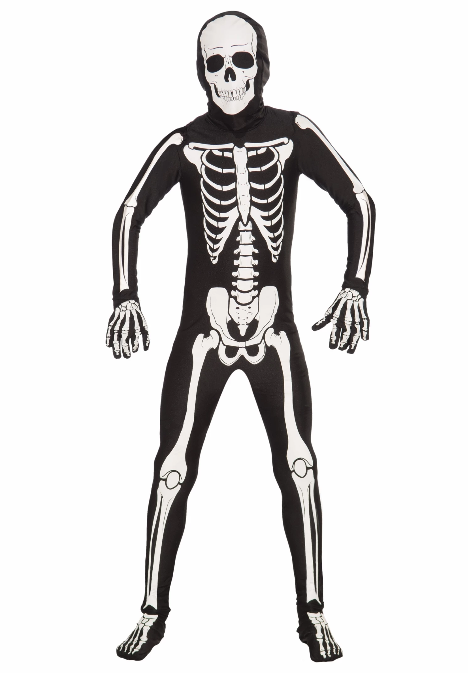 Well, we think a kid like that deserves a Halloween costume that will make all his or her friends wide-eyed and totally spooked. And here it is: the Kids’ Bone Skin Suit, which is the scariest, creepiest Halloween costume ever. Toe bones, leg bones, rib bones, finger bones – they’re all connected here and they’re all ready to “rattle!”