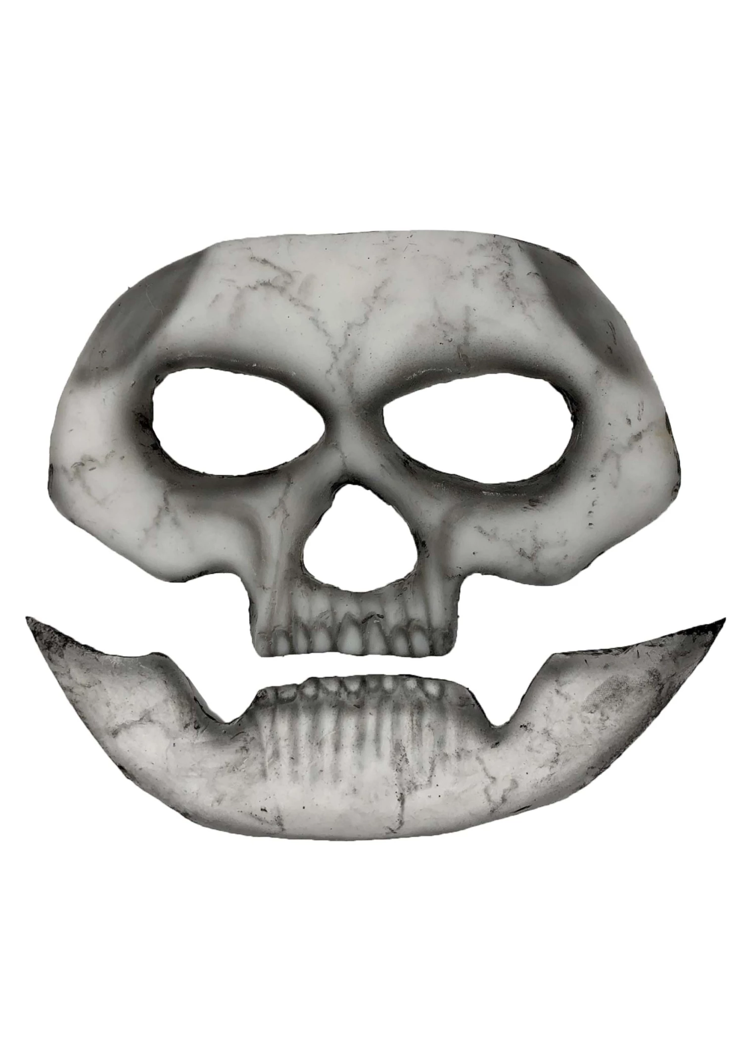 Look fresh from the grave when you add this easy-to-use silicone mask to your ensemble. The 2-piece accessory sticks to clean and dry surfaces and doesn’t require any glue or bands to secure. Simply position and place the upper facepiece and jaw piece as preferred. The white skull pieces feature sculpting, shading, and decorative cracking patterns to give them a realistic appearance. Add black base paint between the components and under the eye and nose openings to get a traditional skeleton look. When it’s time to return the haunting character to their crypt, gently peel the mask off.