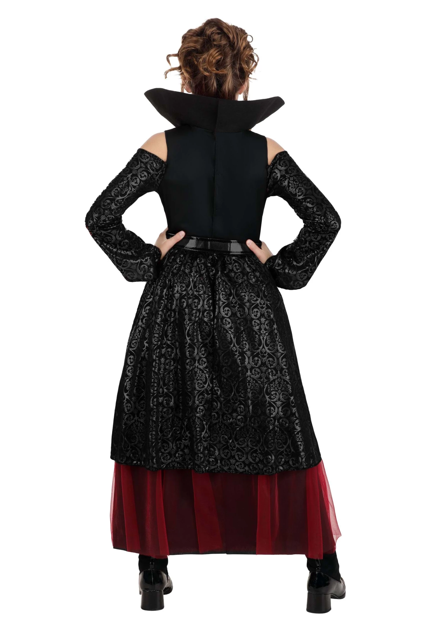 If your child wants to take this outfit to the next level, then be sure to pair it up with any of our vampire costume accessories! A pair of black shoes or some vampire makeup can go a long way for any young vampire queen.